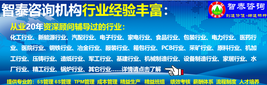 深圳市智泰企業(yè)管理咨詢有限公司又把日本式的TPM管理上升到全員流程管理:T(Total)全員包括生產部門及管理部門等在內的公司全體人員的全員參加;P(Process):流程包括生產、財務、計劃、采購